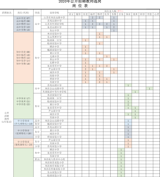 2020年蘇州教師招聘 蘇州吳中公開(kāi)招聘教師選崗崗位表(二)(8月25日下午)