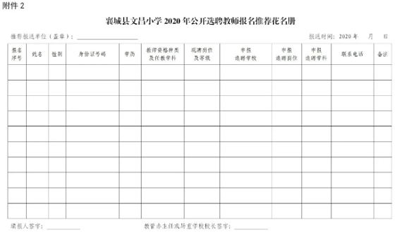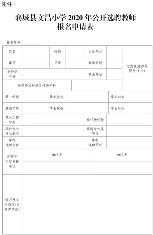 1.襄城縣文昌小學(xué)2020年公開選聘教師報名申請表