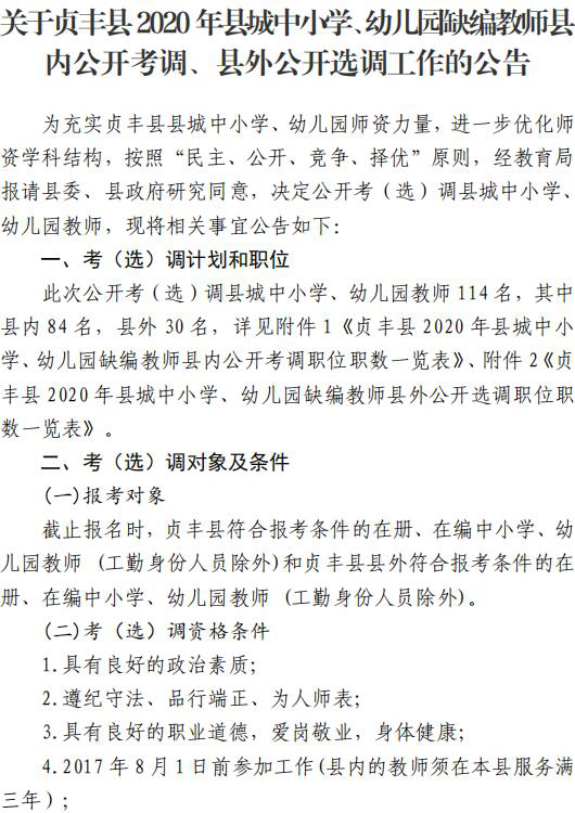 2020年貴州黔西南貞豐縣公開考調(diào)(選調(diào))教師公告【114人】