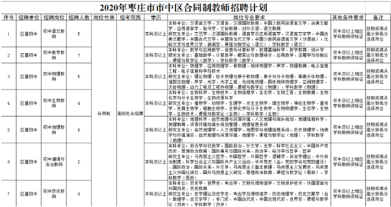 附件:2020年市中區(qū)合同制教師招聘計(jì)劃