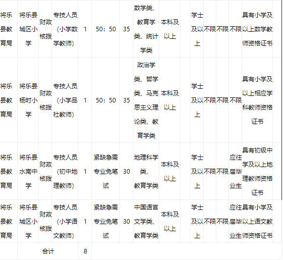 2020年三明教師招聘 福建三明將樂(lè)縣補(bǔ)充招聘中小學(xué)新任教師【8人】
