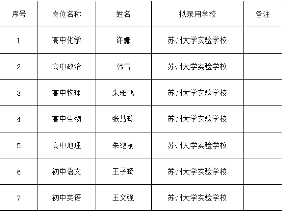 2020年蘇州教師招聘 蘇州大學(xué)實驗學(xué)校補充招聘年金制教師擬錄用人員公示