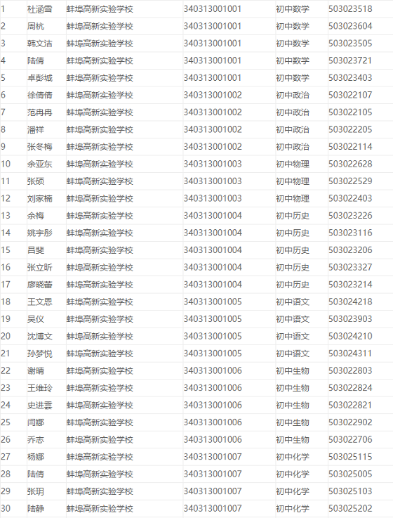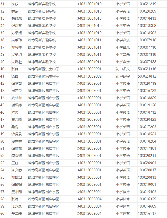 2020年蚌埠教師招聘 安徽蚌埠高新區(qū)中小學(xué)新任教師公開招聘現(xiàn)場(chǎng)資格復(fù)審合格人員名單公告