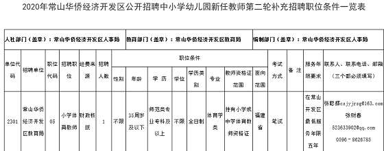 2020年漳州教師招聘 漳州市常山華僑經(jīng)濟(jì)開發(fā)區(qū)公開考試招聘中小學(xué)幼兒園新任教師第二輪補(bǔ)充招聘