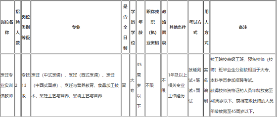 (調(diào)整后)我校2020年度公開(kāi)招聘烹飪專業(yè)實(shí)訓(xùn)課教師崗位信息表