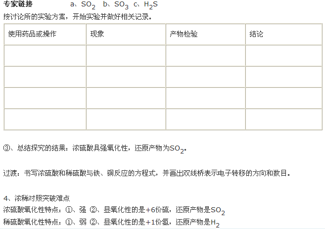 本節(jié)課的難點(diǎn)是濃硫酸的強(qiáng)氧化性。