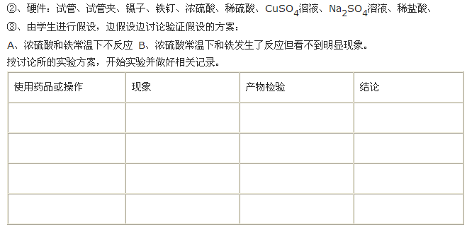 、、目的:濃硫酸和鐵釘混合后無(wú)明顯現(xiàn)象的原因