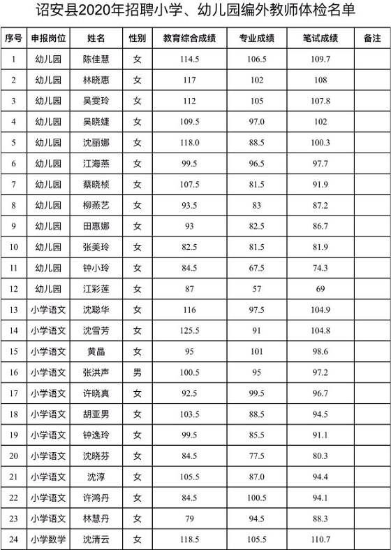 現(xiàn)將2020年詔安縣公開招聘小學幼兒園編外教師體檢工作有關(guān)事項,通知如下: