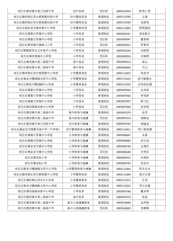 2019年通遼市教育系統(tǒng)公開招聘科左后旗崗位工作人員擬聘用人員名單