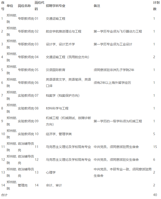 鄭州航空工業(yè)管理學(xué)院2020年公開招聘員額制工作人員信息表