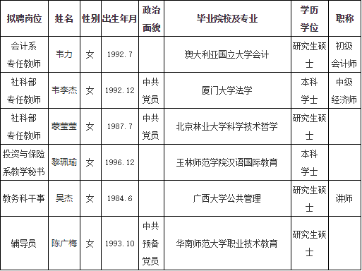 2020南寧教師招聘 廣西金融職業(yè)技術(shù)學(xué)院第一批公開招聘非實(shí)名人員控制數(shù)工作人員擬聘用人員名單公示(第二批)