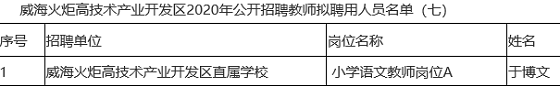 2020威海教師招聘 威海火炬高技術(shù)產(chǎn)業(yè)開發(fā)區(qū)2020年公開招聘教師擬聘用人員公示(七)