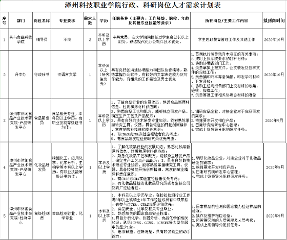 2020年漳州教師招聘 福建漳州科技職業(yè)學(xué)院教職員工招聘公告