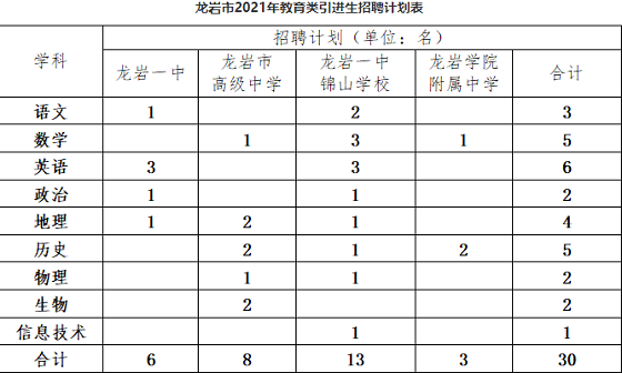 2021年龍巖教師招聘 福建龍巖市教育類引進(jìn)生招聘公告【30人】