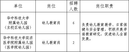 2020年武漢教師招聘 華中科技大學(xué)附屬幼兒園招聘幼兒教師公告【8人】
