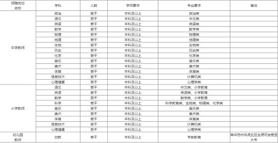 為科學(xué)配置和優(yōu)化我區(qū)教師隊(duì)伍結(jié)構(gòu),促進(jìn)全區(qū)教育事業(yè)可持續(xù)發(fā)展,根據(jù)《蘇州高新區(qū)公辦中小學(xué)(幼兒園)教育專項(xiàng)編制教師管理暫行辦法》(蘇高新管〔2018〕112號(hào)),經(jīng)蘇州高新區(qū)管委會(huì)批準(zhǔn),蘇州高新區(qū)教育局將于2020年10月赴南京師范大學(xué)組織校園招聘。