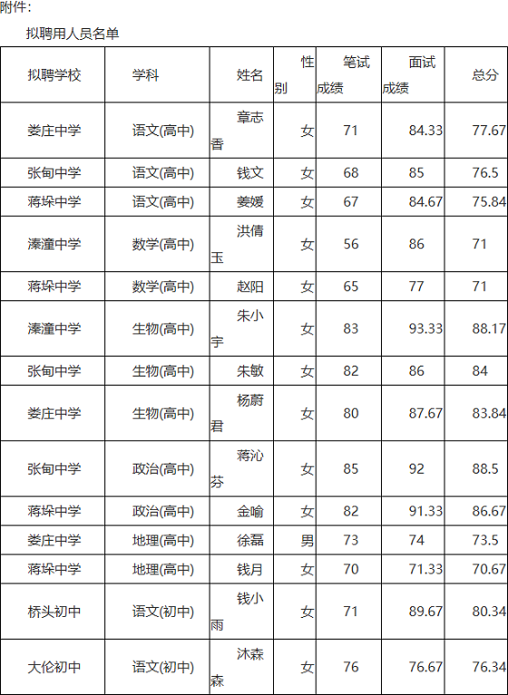 2020年泰州教師招聘 姜堰區(qū)教育局關(guān)于公示公開(kāi)招聘教師擬聘用人員的公告