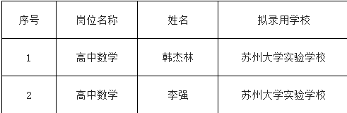 2020年蘇州教師招聘 江蘇蘇州大學(xué)實(shí)驗(yàn)學(xué)校補(bǔ)充招聘年金制教師擬錄用人員公示