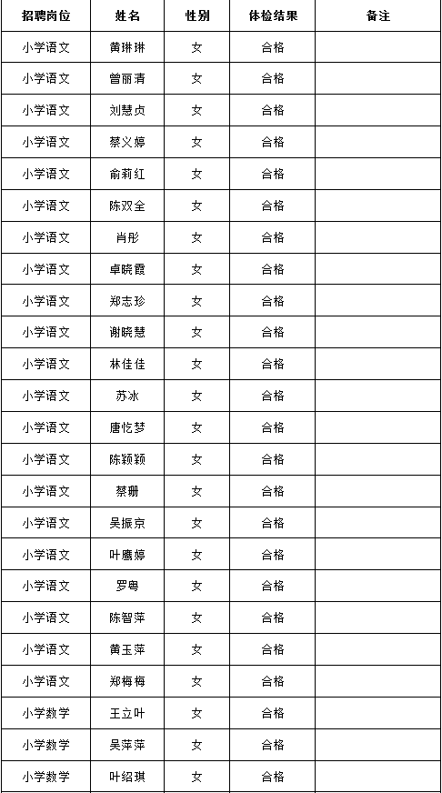 2020年莆田教師招聘 荔城區(qū)新任教師二輪公開(kāi)招聘擬入圍人員體檢結(jié)果公布