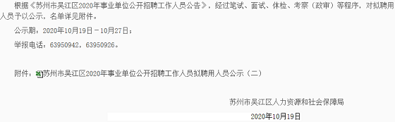 2020年蘇州教師招聘 蘇州市吳江區(qū)事業(yè)單位公開招聘工作人員擬聘用人員公示(二)