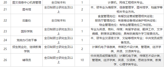 相關(guān)要求:應(yīng)聘人員的學(xué)歷(學(xué)位)必須為國家承認(rèn)的學(xué)歷(學(xué)位)。出國留學(xué)人員學(xué)歷應(yīng)通過教育部相關(guān)部門的學(xué)歷認(rèn)證。行政人員招聘學(xué)歷學(xué)位證書(學(xué)歷認(rèn)證)必須于2020年12月31日前取得;專職教師招聘學(xué)歷學(xué)位證書(學(xué)歷認(rèn)證)必須于2021年7月31日前取得。未在規(guī)定期限內(nèi)取得,則取消應(yīng)聘資格。