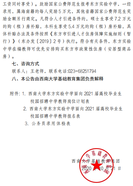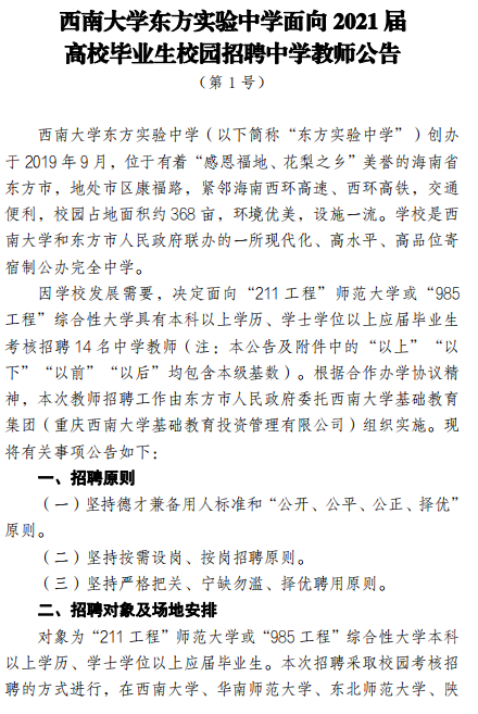 2021年海南省西南大學東方實驗中學面向2021屆高校畢業(yè)生校園中學教師招聘公告