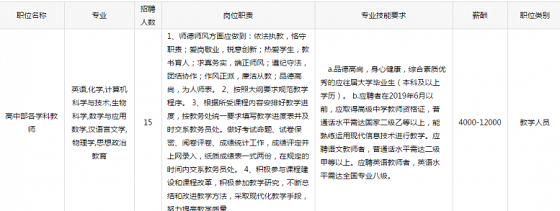 高中部招聘各學科教師若干人,包括:語文2人、數(shù)學2人、英語2人、思想政治1人、歷史1人、地理1人、物理2人、化學2人、生物2人、信息技術1人。