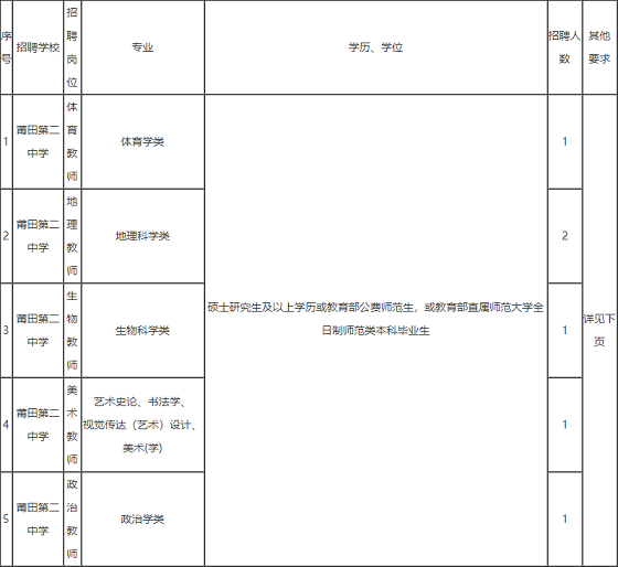 2021福建莆田第二中學(xué)公開招聘新任教師公告【6名】