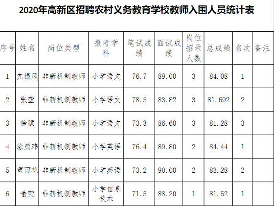 2020年湖北省孝感市高新區(qū)義務教育學校教師招聘入圍人員體檢公示