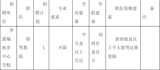 為進一步發(fā)展少數(shù)民族傳統(tǒng)體育運動,傳承少數(shù)民族射弩運動文化,全面提升我縣羅溪瑤族鄉(xiāng)射弩訓(xùn)練基地運動員整體素質(zhì),根據(jù)羅溪瑤族鄉(xiāng)中心學(xué)校射弩運動訓(xùn)練基地的工作需要,經(jīng)縣委縣政府研究同意,決定公開招聘射弩教練1名。根據(jù)中共中央組織部人力資源社會保障部《關(guān)于進一步做好艱苦邊遠地區(qū)縣鄉(xiāng)事業(yè)單位公開招聘工作的通知》(人社部規(guī)﹝2016﹞3號)、中共湖南省委組織部湖南省人力資源和社會保障廳《關(guān)于印發(fā)《湖南省事業(yè)單位公開招聘人員辦法》的通知》(湘人社發(fā)〔2019〕1號)、中共邵陽市委組織部邵陽市人力資源和社會保障局《關(guān)于印發(fā)<邵陽市事業(yè)單位公開招聘人員實施細則>的通知》(邵人社發(fā)〔2019〕54號)等文件有關(guān)規(guī)定,為確保招聘工作順利進行,特制定本方案。