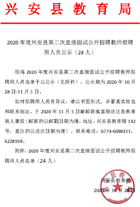 2020廣西桂林市興安縣第二次直接面試公開招聘教師擬聘用人員公示