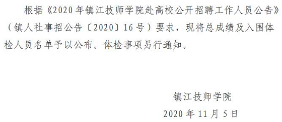 2020年江蘇省鎮(zhèn)江技師學(xué)院赴高校公開(kāi)招聘工作人員總成績(jī)公告