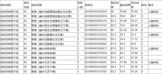 2020年福建省泉州市直有關(guān)學(xué)校招聘編外工作人員成績公示
