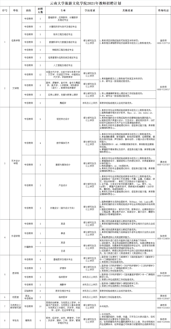 2021年云南大學(xué)旅游文化學(xué)院教師招聘【98人】
