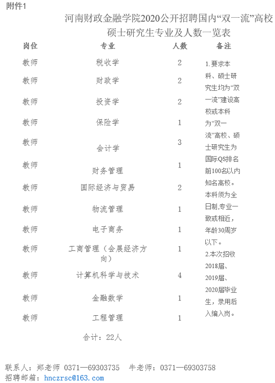 1.專業(yè)不限(與河南財政金融學(xué)院設(shè)置專業(yè)相關(guān));