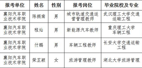 2020年湖北襄陽汽車職業(yè)技術(shù)學(xué)院緊缺高層次人才招聘擬聘用人員公示