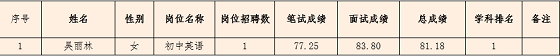 根據(jù)《省教育廳、省編辦、省人社廳、省財(cái)政廳、省發(fā)改委關(guān)于做好2020年全省義務(wù)教育學(xué)校教師公開(kāi)招聘工作的通知》(鄂教人函[2020]3號(hào))和《孝感市孝南區(qū)2020年義務(wù)教育學(xué)校教師公開(kāi)招聘考試公告》文件精神,結(jié)合省教育廳下發(fā)的有效筆試成績(jī),經(jīng)過(guò)對(duì)入圍考生進(jìn)行資格審查,再通過(guò)面試、體檢和政審等程序,確定吳麗林等1人(名單附后)為2020年臨空經(jīng)濟(jì)區(qū)學(xué)區(qū)義務(wù)教育學(xué)校教師招聘擬聘用人選,現(xiàn)予以公示,公示時(shí)間為5天。廣大群眾對(duì)公示對(duì)象的有關(guān)意見(jiàn),可在公示期內(nèi)以口頭、書面或電話等形式向臨空經(jīng)濟(jì)區(qū)學(xué)區(qū)反映。反映情況要堅(jiān)持實(shí)事求是的原則,具體真實(shí),提倡實(shí)名反映,以便調(diào)查核實(shí)。