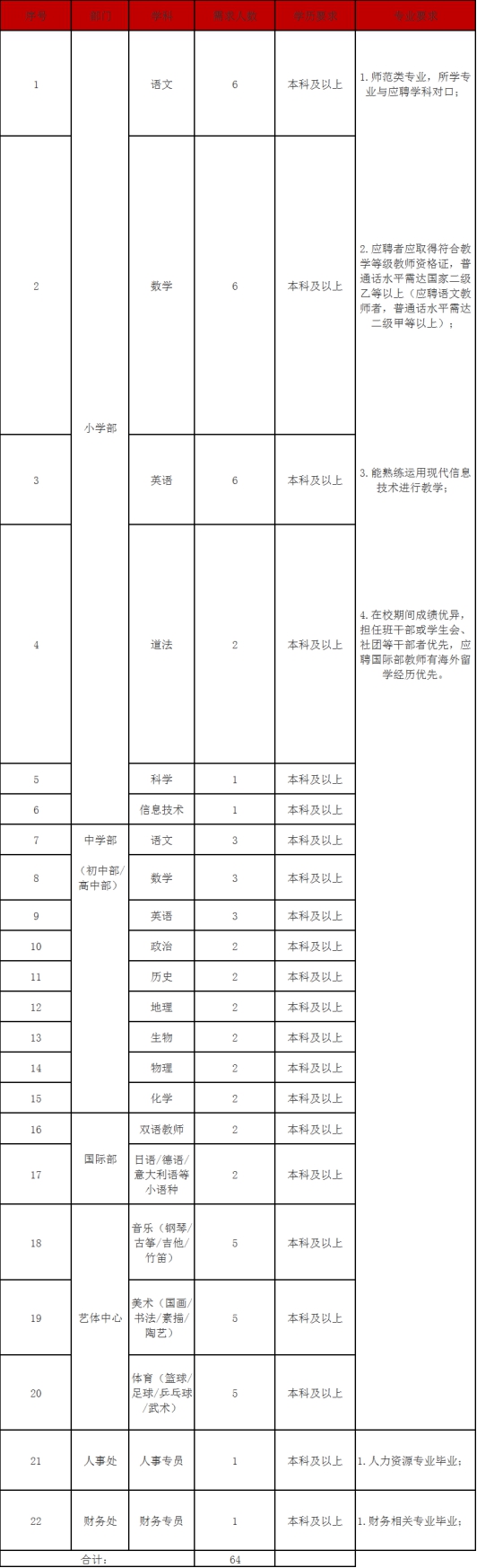 2020年廣東惠州北大培文大亞灣實(shí)驗(yàn)學(xué)校招聘教師公告【64人】