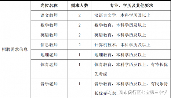 2021年上海閔行區(qū)七寶第三中學(xué)教師招聘啟事【11人】