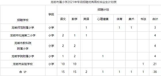 2021福建龍巖市屬小學(xué)面向高校畢業(yè)生專項(xiàng)招聘教師公告【36人】