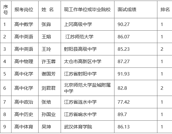 2020年下半年華東師范大學(xué)鹽城實(shí)驗(yàn)中學(xué)招聘具有碩士研究生及以上學(xué)歷學(xué)位教師用人員名單(第一批)