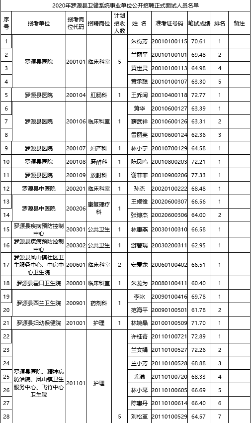 2020年福建省福州市羅源縣衛(wèi)健系統(tǒng)事業(yè)單位公開(kāi)招聘面試人員名單公示
