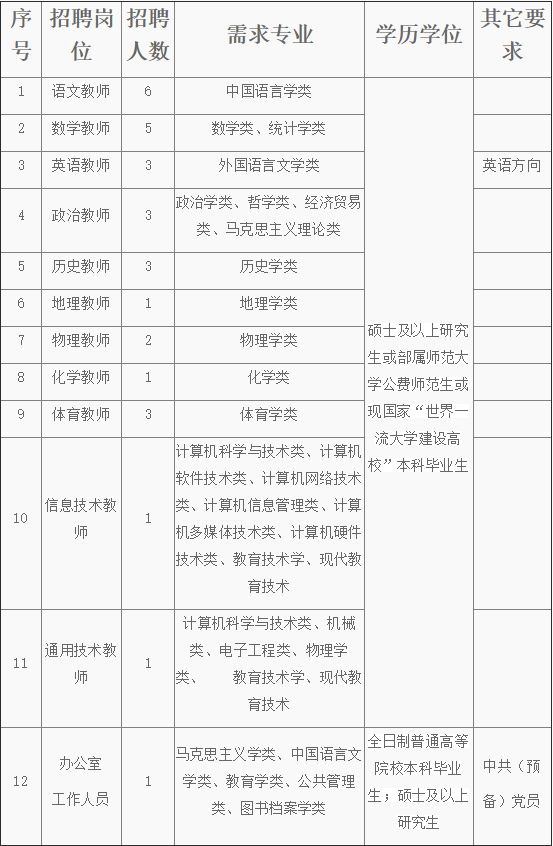 因工作需要,擬向社會專項公開招聘教師及工作人員30名。根據(jù)相關(guān)文件規(guī)定,制定具體方案如下: