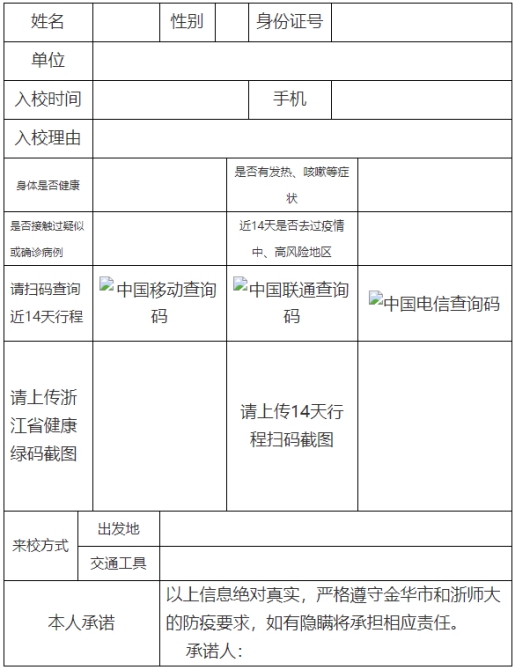 2.浙江師范大學招聘會外校學生入校申請表
