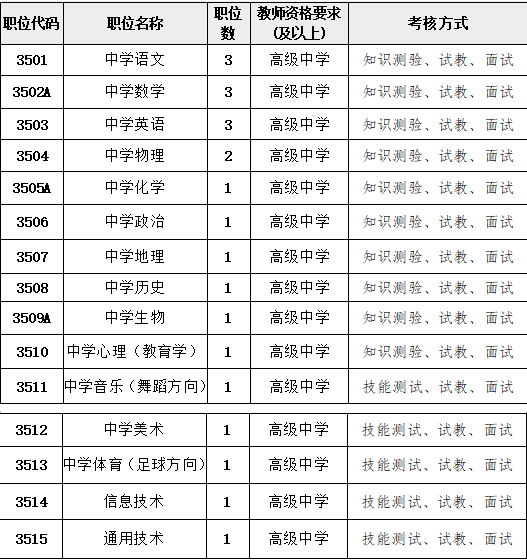 2、西安考點人才引進職位共3個(見下表),僅限符合《公告》報考條件的公費師范生報考。