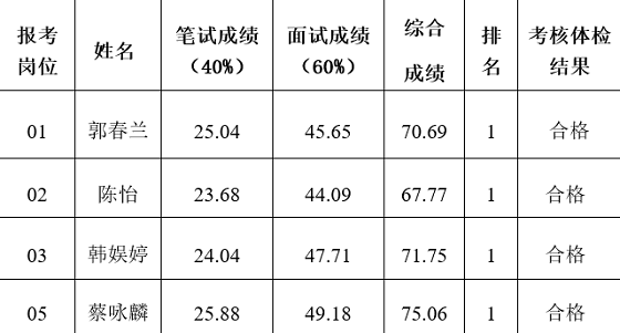 說明:04崗位擬聘人選資格復(fù)審,暫緩辦理。