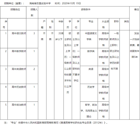 2020年海南省農(nóng)墾實(shí)驗(yàn)中學(xué)公開招聘教師公告【8人】