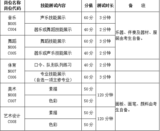 根據(jù)《2021年長沙市特殊教育學(xué)校公開招聘教師公告》,現(xiàn)將南京、重慶考點(diǎn)音樂、舞蹈、體育、美術(shù)、藝術(shù)設(shè)計(jì)招聘崗位的技能測試辦法公布如下。
