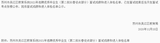 2021年蘇州市吳江區(qū)教育系統(tǒng)選聘優(yōu)秀畢業(yè)生(第二批長春設(shè)點(diǎn)部分)面試成績公布及進(jìn)入體檢人員名單