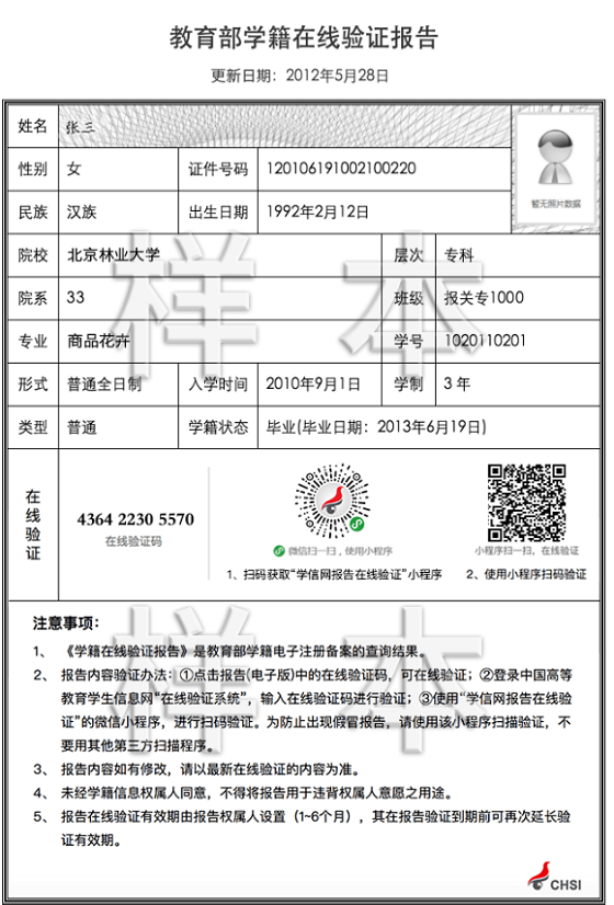 4.學(xué)信網(wǎng)學(xué)籍在線驗(yàn)證報(bào)告打印件樣張;
